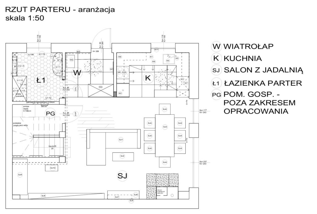 rzuty techniczne instalacji, ścian, podłóg i sufitów